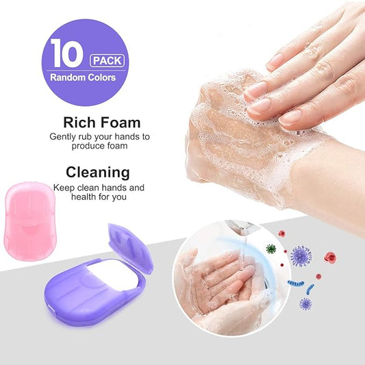 10 Boxes (500 sheets) Portable Hand Soap Flakes, Travel Paper Soap Sheets for Hand Washing, Disposable Laundry Clothes Soap Leaves for Traveling Hiking Camping