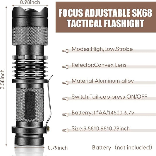 10 Pack Mini Flashlight LED Flashlight 3 Mode Flashlight Adjustable Handheld Flashlight for Camping Hiking Outdoor Work (Black)