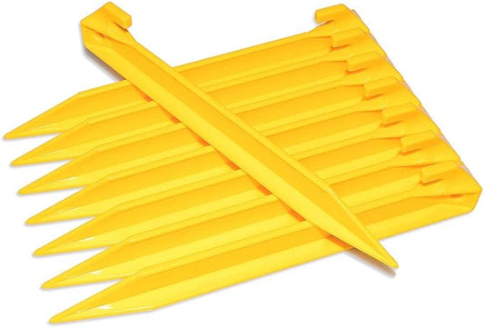 10 Pack Plastic Tent Stakes - 9 Inch Heavy Duty Beach Tent Pegs Canopy Stakes - Essential Gear for Camping, Backpacking, Gardening and More