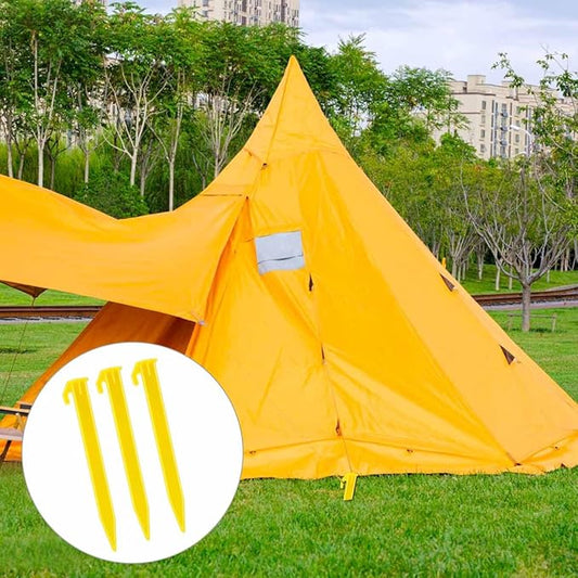 10 Pack Plastic Tent Stakes Heavy Duty Beach Tent Pegs Canopy Stakes for Camping Gardening Backpacking Tent Pegs Spike Hook for Outdoor Garden Decorations Lawn Tarp Sand Stakes for Beach (Yellow)