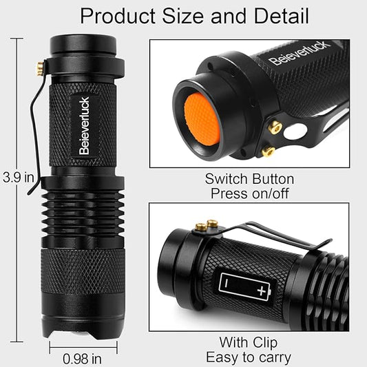 10 Pack Red Light Flashlight Single Mode Red Light Torch with Clip Zoomable Red Flashlight for Hunting Astronomy Aviation Night Observation