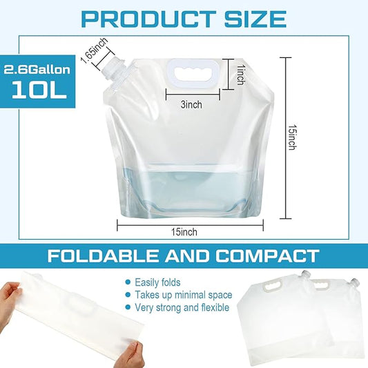 10 Pcs Collapsible Water Container Bag 2.6 Gallon Ice Bath Bags Foldable Water Bag Cold Plunge Accessories Emergency Water Pouches for Camping, Hiking, Emergency, Freezable, Athletes