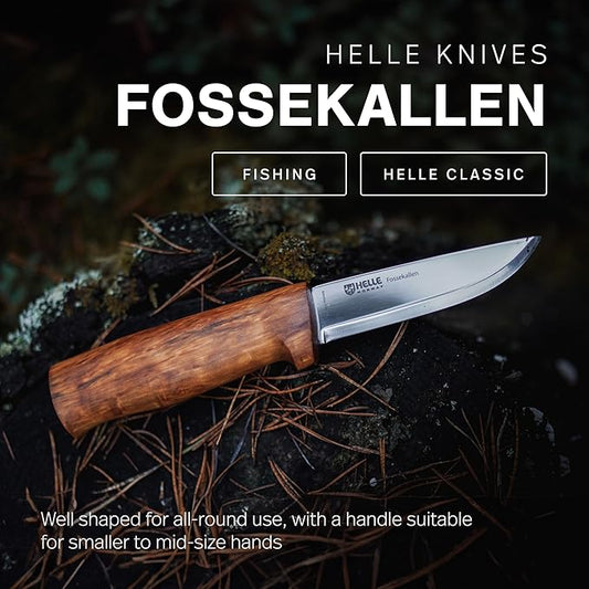 HELLE Knives - Fossekallen - Fixed Blade - Classic Knife - Birch Wood Handle - 12C27 Stainless Steel - Made in Norway