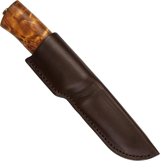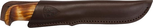 HELLE Knives - Gro- Fixed Blade Knife - Birch Wood Handle - Stick Tang- Camping, Hunting - 12C27 Stainless Steel - Leather Sheath - Made in Norway