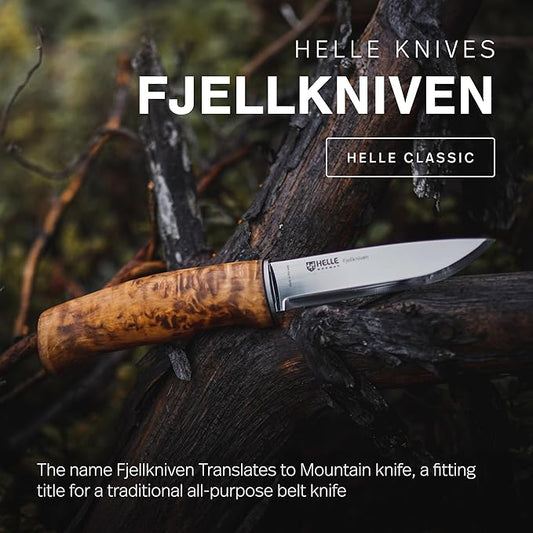 HELLE Knives - Fjellkniven - Fixed Blade - Classic Knife - Birch Wood Handle - 12C27 Stainless Steel - Made in Norway