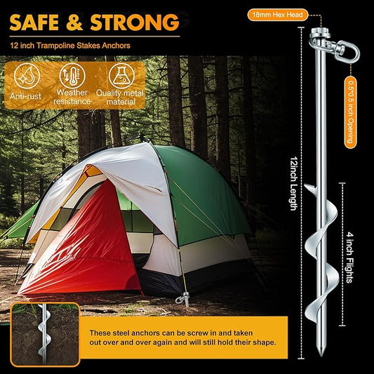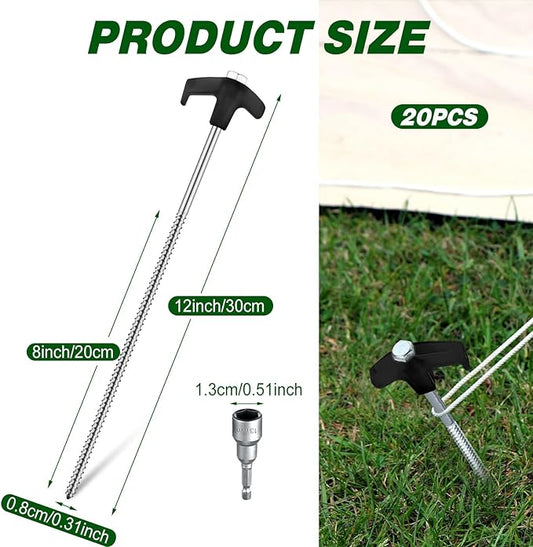 Hicarer 12 Inch Tent Stakes Screw in Camping Stakes Heavy Duty Metal Stake Ground Anchor Peg Threaded Tent Spikes with Hex Head Driver for Camping Garden Inflatable