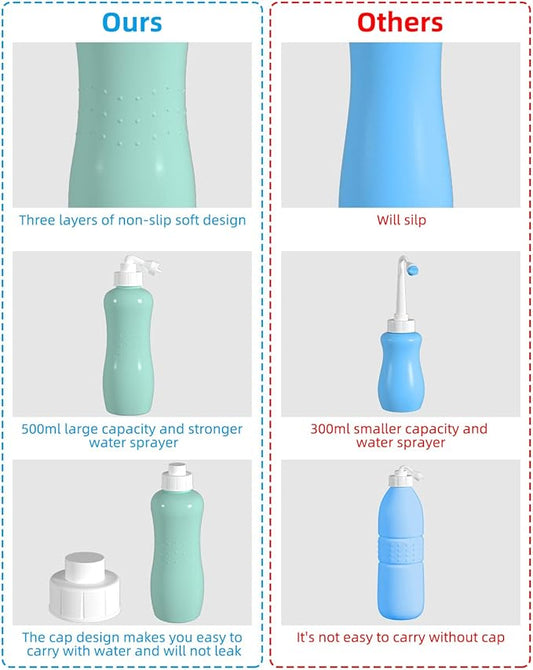 Hibbent 2 Pack Portable Bidet Sprayer, Travel Bidet with Handheld Bidet Bottle for Personal Hygiene Care, Personal Cleansing Use, Extended Nozzle, 17oz(500ml) Bathroom Toilet Bidet Spray, Green