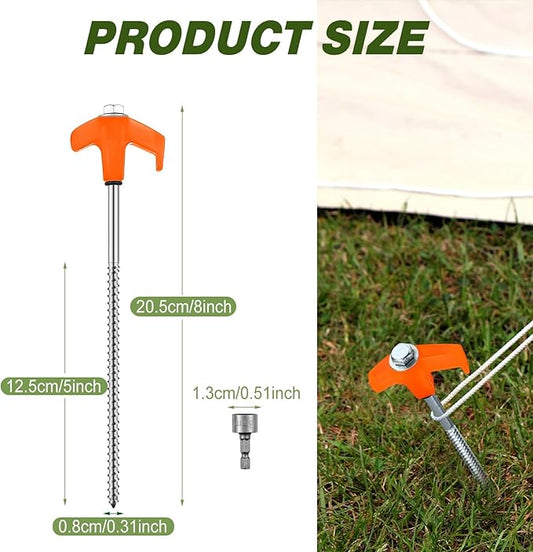 Hicarer 10 Pcs 8'' Screw in Tent Stakes Heavy Duty Ground Anchors Screw in Tent Pegs Ground Stakes Tent Spikes Metal Tent Spikes with Hex Head Driver for Camping Garden Canopies (Orange)