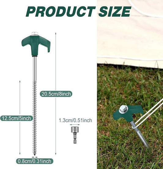 Hicarer 10 Pcs 8'' Screw in Tent Stakes Heavy Duty Ground Anchors Screw in Tent Pegs Ground Stakes Tent Spikes Metal Tent Spikes with Hex Head Driver for Camping Garden Canopies (Dark Green)