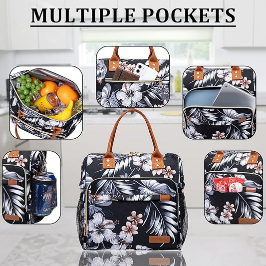 Hibiscus Lunch Box for Women Adult Insulated Lunch Bag Ladies Lunch Tote Bag for Work Loncheras para Mujer de Trabajo