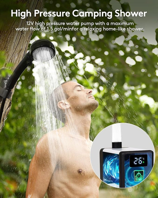 High Pressure Camping Shower, Portable Outdoor Shower with High-Speed Brushless Motor - 6000mAh, 2000RPM Water Pump, 3 Spray Settings for Hiking, Car Wash, Pet Cleaning, Beach Vacations