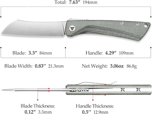 Higonokami Folding Pocket Knife for Men,3.3" 14C28N Stonewash Camping EDC Knives with Clip Micarta Handle,Norma-04G