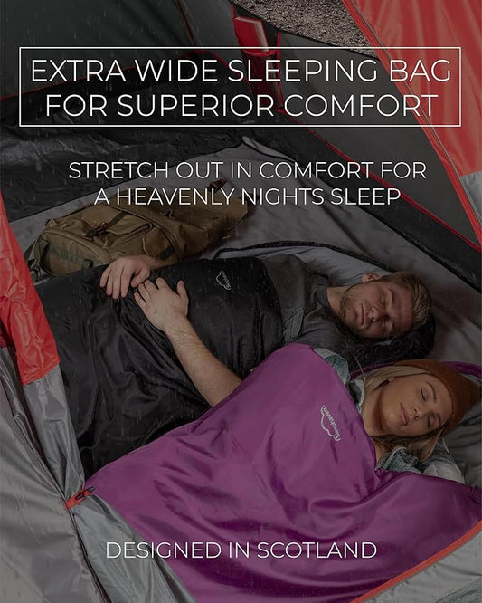 Highlander Sleephaven XL Adult Wide Tall Lightweight 2 Season Sleeping Bag Curved Pod Design - Perfect for Camping, Hiking and Backpacking