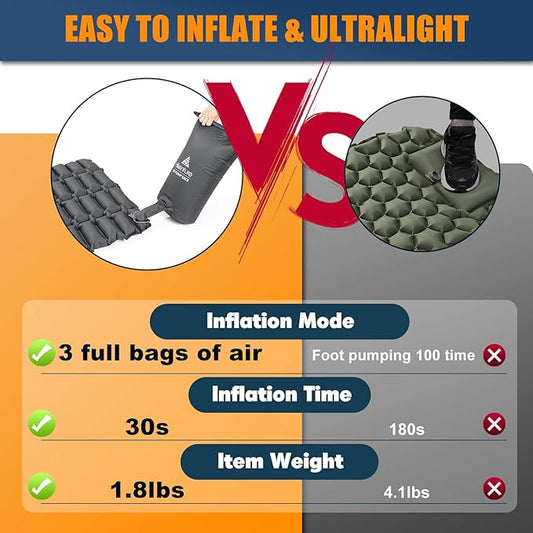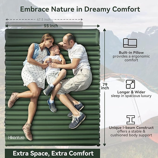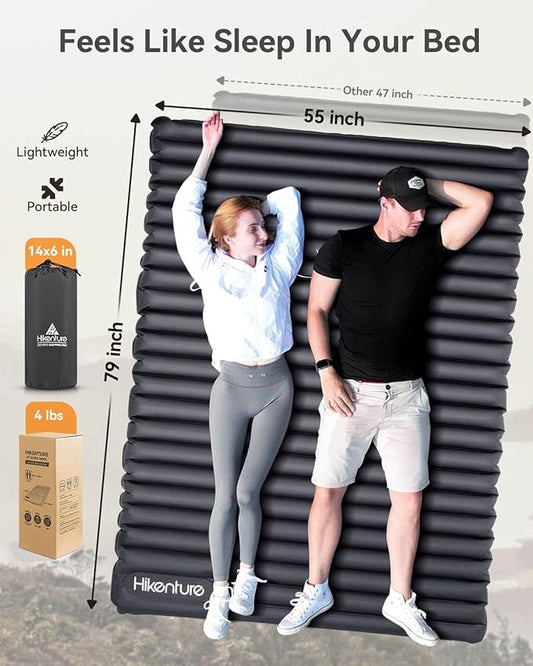 Hikenture Double Sleeping Pad for Camping, Ultralight 4" Extra-Thick Camping Mattress 2 Person, Inflatable Backpacking Sleeping Mat, Hiking Air Mattress for Tent (Foot Pump)