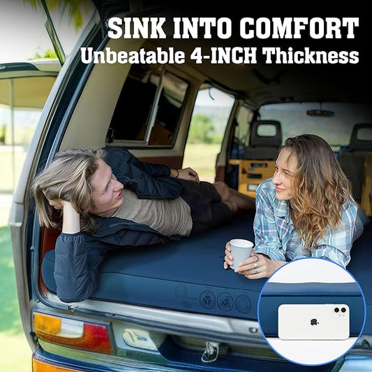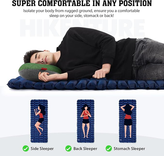 Hikenture Double Sleeping Pad for Camping, 4" Extra-Thick Camping Mattress 2 Person, Inflatable & Ultralight Sleeping Mat for Backpacking, Hiking (Navy Foot Pump, Full XL)