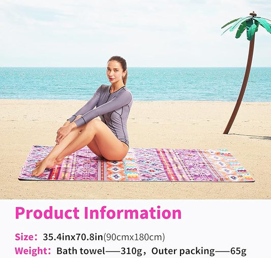 Hiturbo Microfiber Beach Towel-Quick Fast Dry Super Bath Towels Absorbent Lightweight Pool Beach Blanket, Ultra Compact Perfect for Travel Pool Swimming Bath Camping Yoga Gym Sports