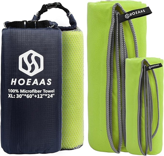 HOEAAS 2 Pack Microfiber Camping Towels, Quick Dry Towel, Super Absorbent Ultra Compact Travel Towel Soft Lightweight Sports Towel for Sweat Fast Drying Towels for Pool,Gym,Hiking,Backpacking,Fitness