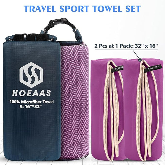HOEAAS 2 Pack Microfiber Camping Towels, Quick Dry Towel, Super Absorbent Ultra Compact Travel Towel Soft Lightweight Sports Towel for Sweat Fast Drying Towels for Pool,Gym,Hiking,Backpacking,Fitness
