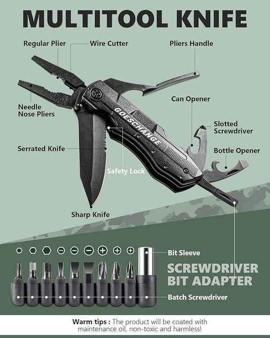 10-IN-1 Multi Tool with Pocket Knife, Screwdrivers, Pliers, Bottle Opener, Can Opener, Safety Locking, Nylon Shealth - Father's Day Gift, Gift for Him Men Husband Boyfriend, Multitool Knife