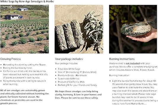(Pack of 3)-New Age Smudges & Herbs -Premium California White Sage Incense 4 Inches Long. Home Cleansing Incense,Fragrance,Meditation,Smudging Rituals.California Smudge Sticks Rituals -4 Inch