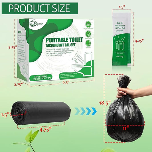 (30pcs Poo Gel+20pcs Toilet Bag Portable Toilet Absorbent Gel Poo Urine Powder for Outdoor Hiking Camping Poo Gel for Portable Toilet Camping Toilet Gel Poo Powder for Outdoor Use