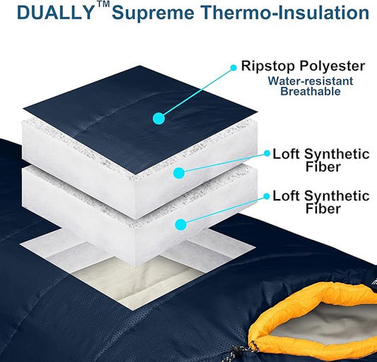 0 Degree Mummy Sleeping Bags for Adults Camping | XXL Big and Tall 3-4 Season Warm Cool | Cold Weather Winter Sleeping Bag w. Compression Sack Youth | Side Sleeper Friendly