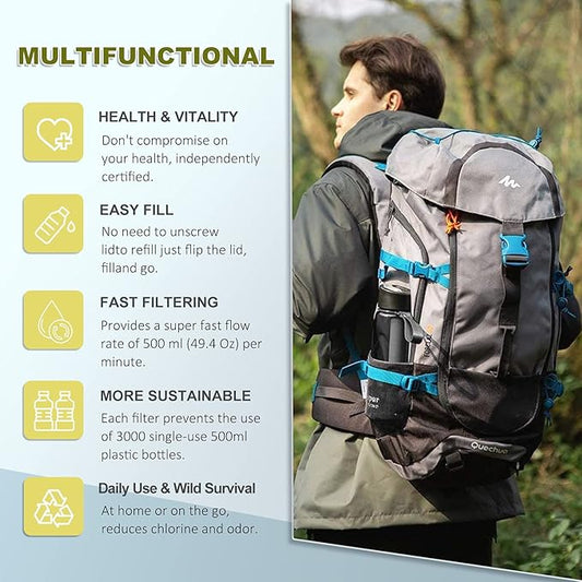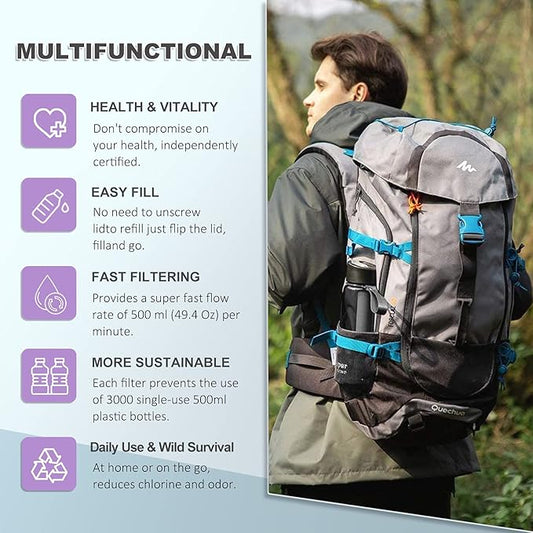 0.01 μm Ultra Filtration Portable Water Bottle - 4-Stage Filtered BPA-Free Reusable Water Bottle - for Survival,Hiking,Emergency,Camping and Backpacking