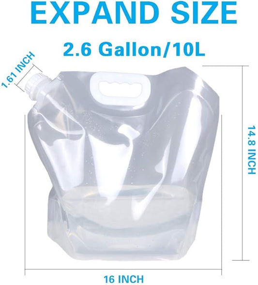 1.3 Gallon /2.6 Gallon Collapsible Water Container Bag, BPA Free Food Grade Clear Plastic Storage Jug for Sport Camping Riding Mountaineer,Freezable,Food Grade (2.6 Gal/10L-10-pack)