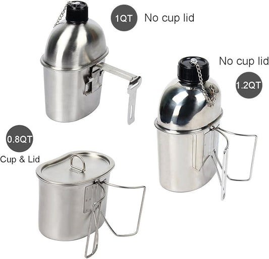 1.2QT Portable Water Bottle Stainless Steel Military Canteen with Cup Green Bag Outdoor Sport Camping Hiking Travel