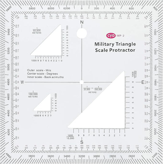 1.2mm Transparent Plastic Military UTM/MGRS Coordinate Scale Map Reading and Land Navigation Topographical Map Scale, Protractor and Grid Coordinate Reader