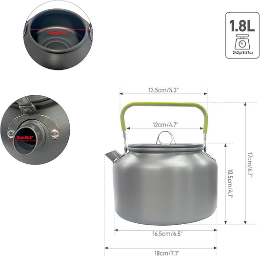 1.8L Camping Kettle, Hard-Anodized Aluminum Portable Campfire Kettle for Open Fire, Outdoor Camp Tea Coffee Pot for Stove Top, Backpacking, Hiking, Picnic and Traveling