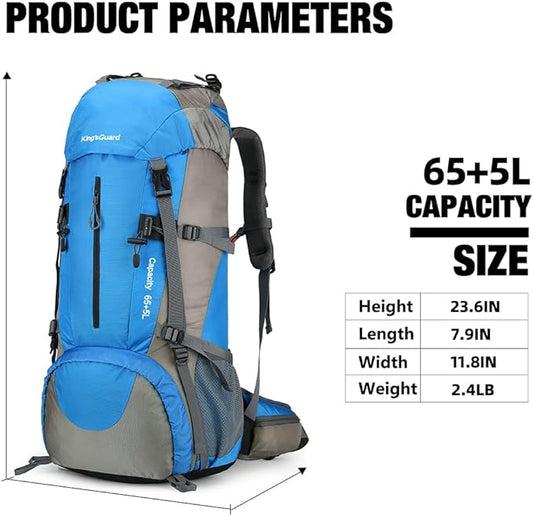 70L Camping Hiking Backpack with Rain Cover Waterproof Backpacking Backpack for Hiking Treeking Climbing Outdoor (Blue)