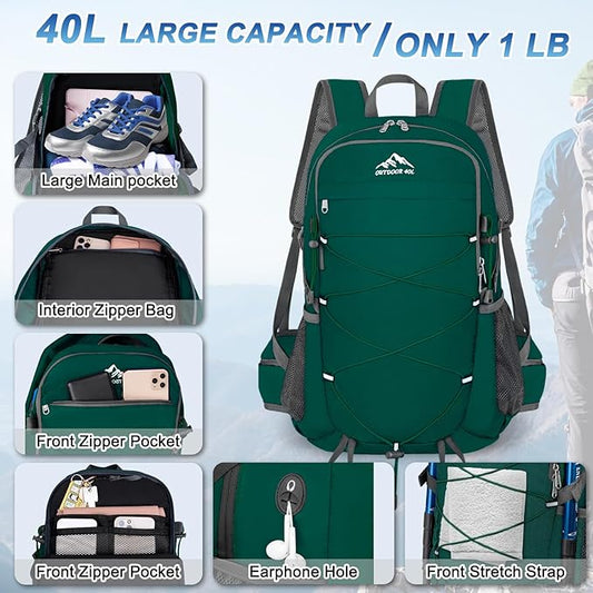 BKNOOU 40L Lightweight Hiking Backpack Packable Camping Backpack Waterproof Hiking Daypack Men Women Foldable Travel Daypack