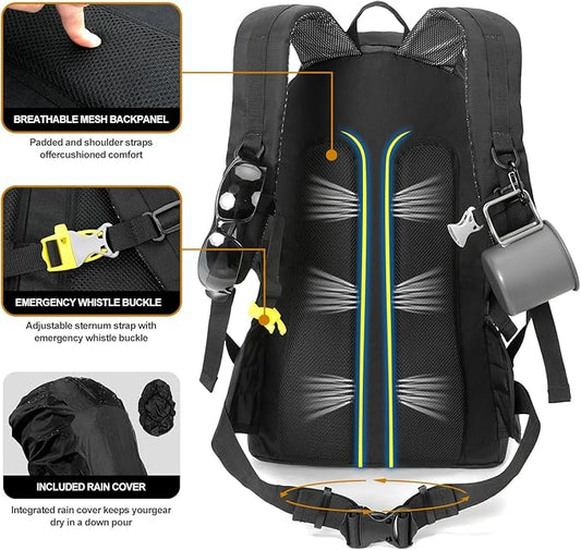 INOXTO 40L Hiking Backpack, Camping Backpack with Waterproof Rain Cover for Men, Outdoor Sport Travel Daypack for Climbing (065 Black)