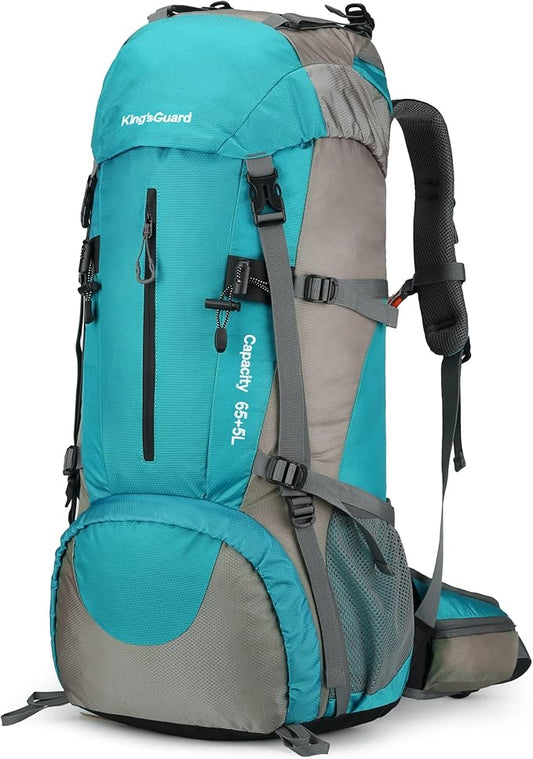 King'sGuard 70L Hiking Backpack Large Lightweight Waterproof Camping Backpack Travel Backpacking Backpack Daypack with Rain Cover -Frameless (Lake Blue)