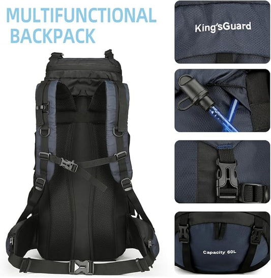 King'sGuard 60L Hiking Backpack Men Women Camping Backpack Waterproof Backpacking Mountaineering Climbing Daypack (Lake Blue)