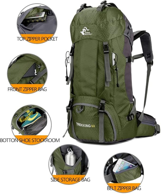 Bseash 60L Waterproof Hiking Camping Backpack with Rain Cover, Large Outdoor Sport Travel Daypack Rucksack for Climbing