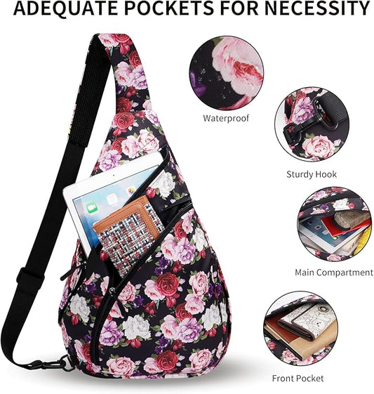 HUA ANGEL Crossbody Sling Bag for Men & Women Lightweight Waterproof Chest Shoulder Bag for Travel Hiking & Everyday Use