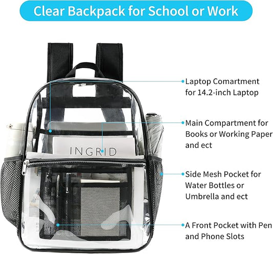 USPECLARE Clear Backpack for Stadium Approved 12×6×12, Water proof Clear Bag for Stadium Events and Concert Work Sport Event