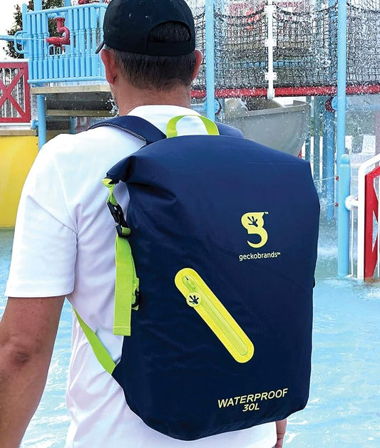 geckobrands Lightweight 30L Waterproof Backpack - Lightweight Watertight Outdoor Bag Hiking Traveling Light Water Activities