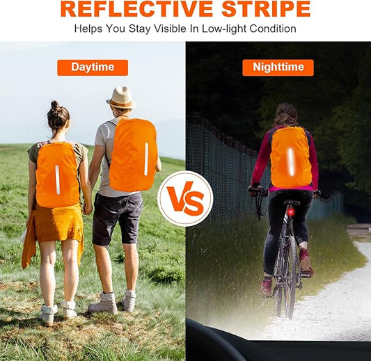 LAMA 2 Pack Waterproof Rain Cover for Backpack, Reflective Rucksack Rain Cover for Anti-dust/Anti-Theft/Bicycling/Hiking/Camping/Traveling/Outdoor Activities (1 Pcs Black + 1 Pcs Orange, XL)