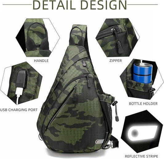 Water-Proof Sling bag/Crossbody Backpack/Shoulder Bag with USB Charging Port for Travel, Hiking, Cycling, Camping