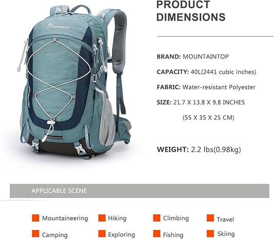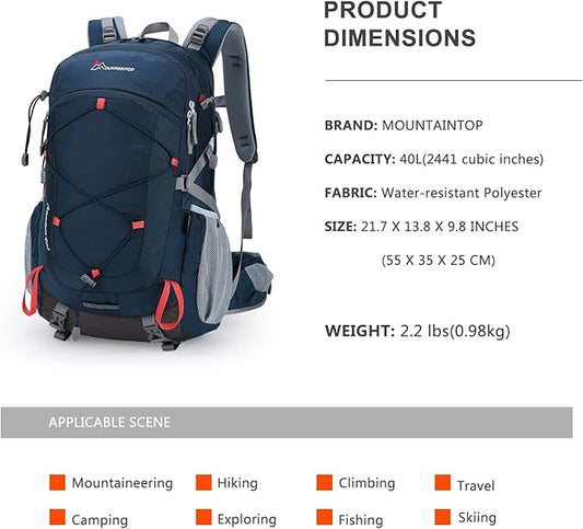 MOUNTAINTOP 40L Hiking Backpack Travel Daypack with Rain Cover for Outdoor Backpacking, Camping