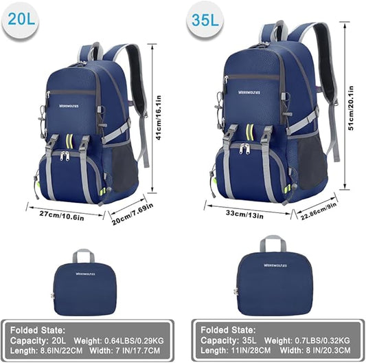 WEREWOLVES 20/35L Lightweight Hiking Backpack, Ultralight Water Resistant Packable Daypack for Women Men