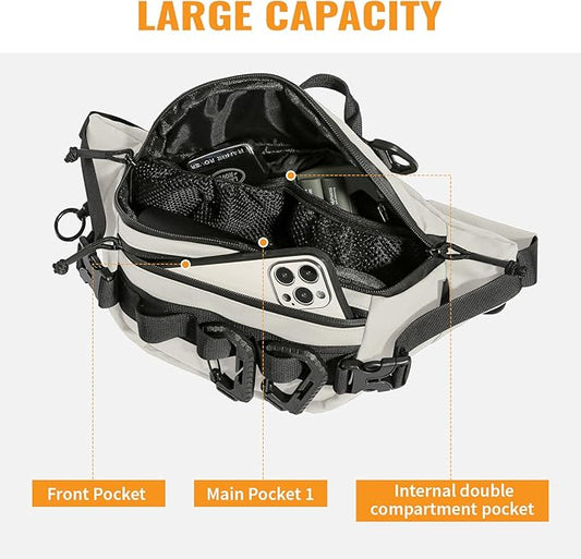 CamGo Tactical Fanny Pack for Men Women Military Waist Bag Molle Utility Hip Belt Pouch Crossbody Bags Bumbag for Cycling Hiking Walking Fishing White