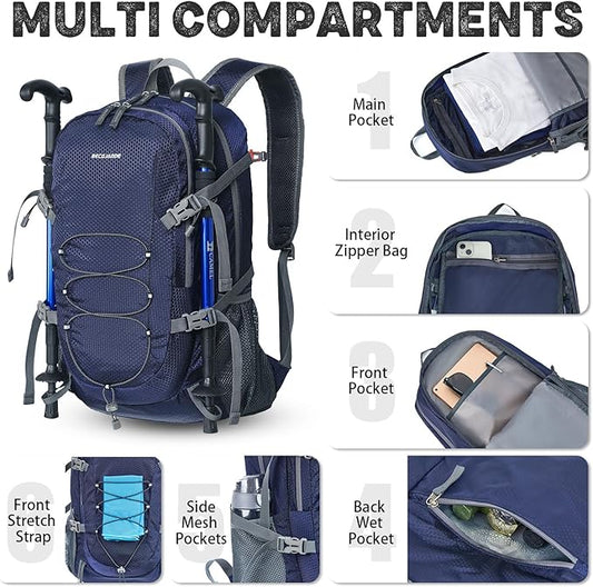 40L Lightweight Hiking Backpack Travel Packable Daypack for Women and Men, Navy Blue