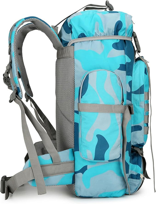 45L Hiking Backpack Camping Rucksack Molle Military Backpack for Outdoor Traveling (Blue Camo)
