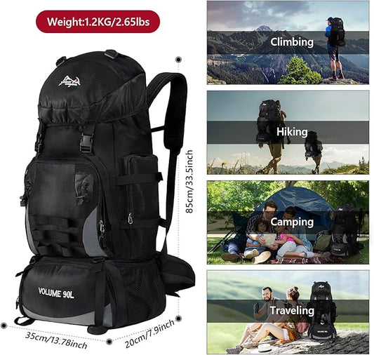 90L Large Camping Hiking Backpack with Rain Cover, Waterproof Molle Rucksack Military Backpack (Black)