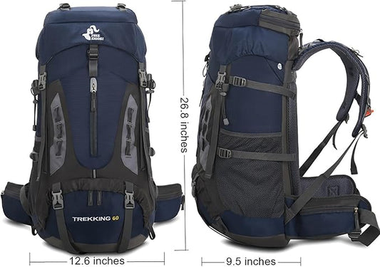 Bseash 60L Hiking Camping Backpack with Rain Cover, Waterproof Large Capacity Outdoor Sport Travel Daypack Climbing Touring (Navy Blue)