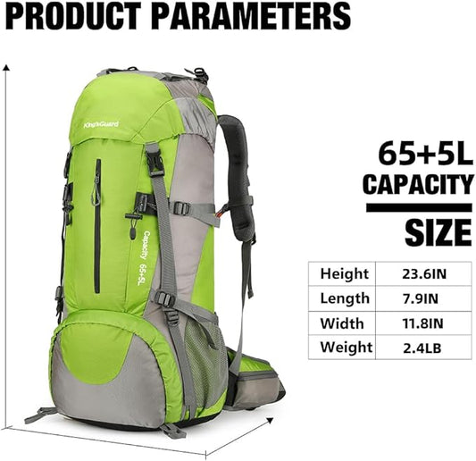 70L Camping Hiking Backpack with Rain Cover Waterproof Backpacking Backpack for Hiking Treeking Climbing Outdoor (Green)